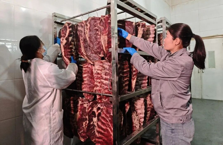 饲养端欣欣向荣的一起,工业链下流的加工环节也在同步增效。在舟曲县绿脉农业科技有限责任公司的出产车间内,经过严厉挑选的黑猪肉,正被加工成风味共同的腊味产品。工人们熟练地修整、腌制,再将肉条送入智能烘干房,恒温慢烘,锁住传统风味。“咱们黑土猪腊肉选用饲养10个月以上的本乡黑土猪,肥瘦相间。在传统工艺的基础上,本年改进了加工工艺,选用低盐微烟熏制,既保留了传统风味,又优化了口感。咱们经过线上线下同步出售,上一年出售额达1300多万元,不只让舟曲腊味走向全国商场,也带动当地专业合作社与饲养户安稳增收,走出一条工业助农的新路子。”公司商场出售负责人刘婷风说。